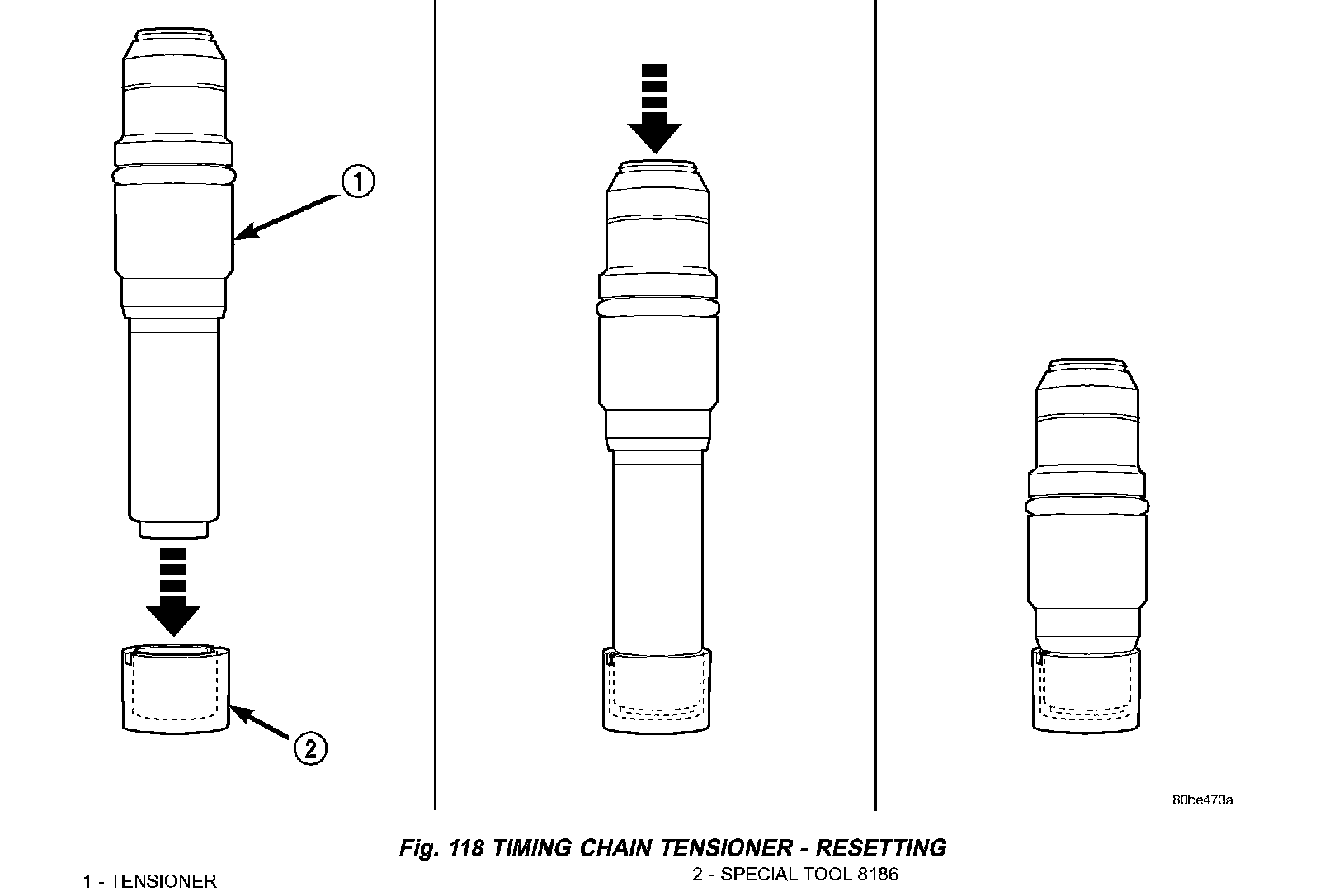 a. Place the check ball end of tensioner into the shallow end of Special Tool 8186 (Fig. 117).