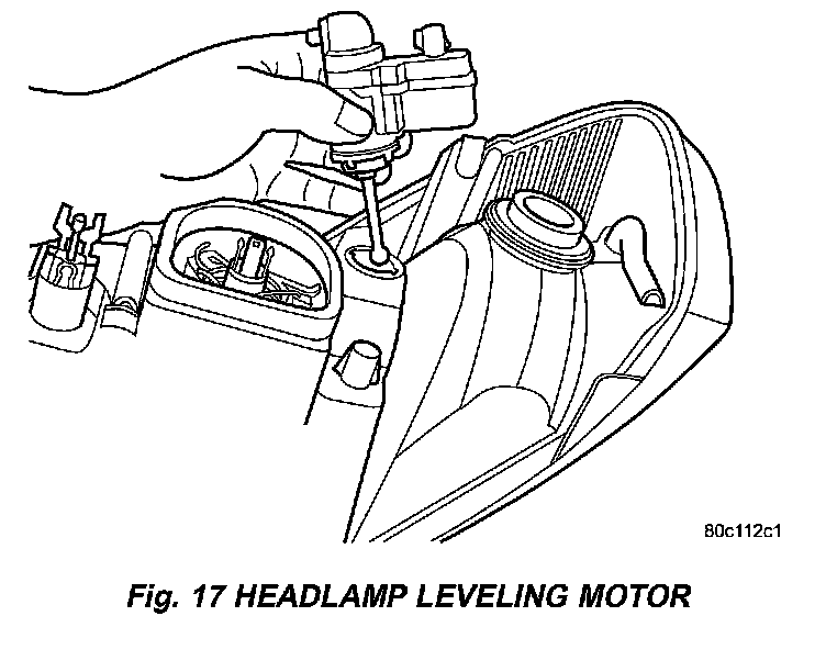NOTE: Be certain the leveling motor ball stud is fully inserted in headlamp leveling socket assembly.
