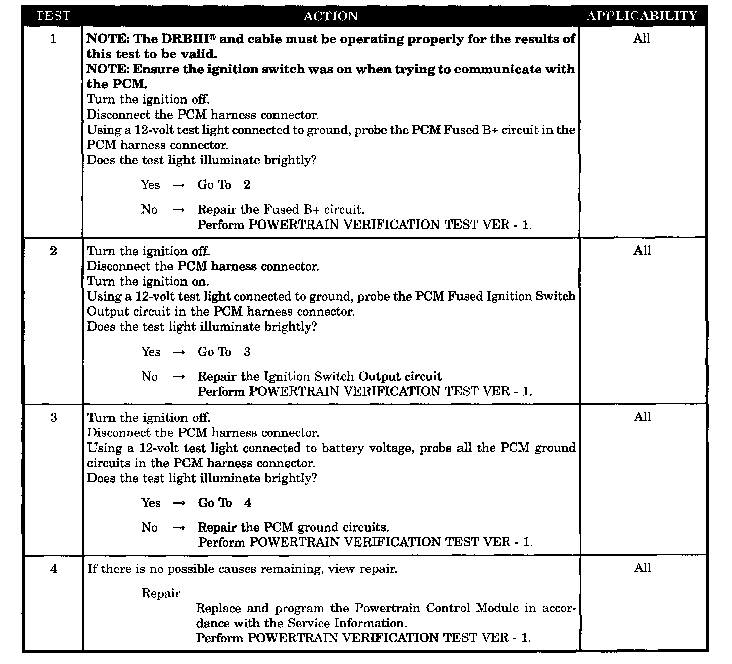 No Response From PCM With A No Start Condition