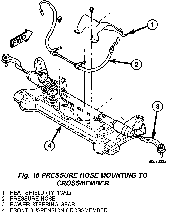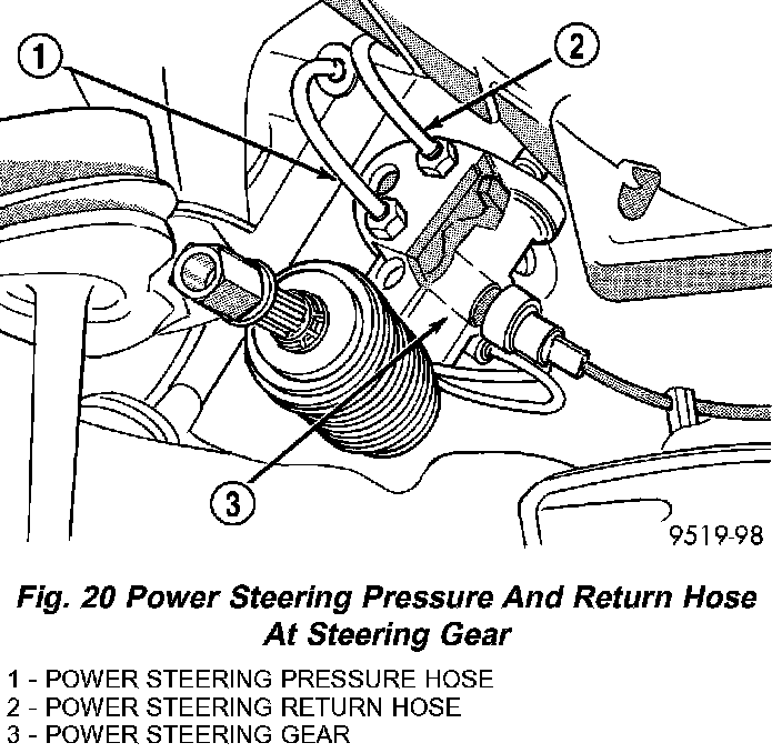 21. Remove power steering pressure and return hoses from the power steering gear fluid ports.