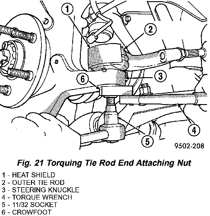 15. Install tie rod end into steering knuckle. Start tie rod end-to-steering knuckle attaching nut onto tie rod stud. While holding stud stationary, tighten nut. To properly torque the nut, use a crowfoot and socket as shown and tighten the nut to 55 Nm (40 ft. lbs.) torque.
