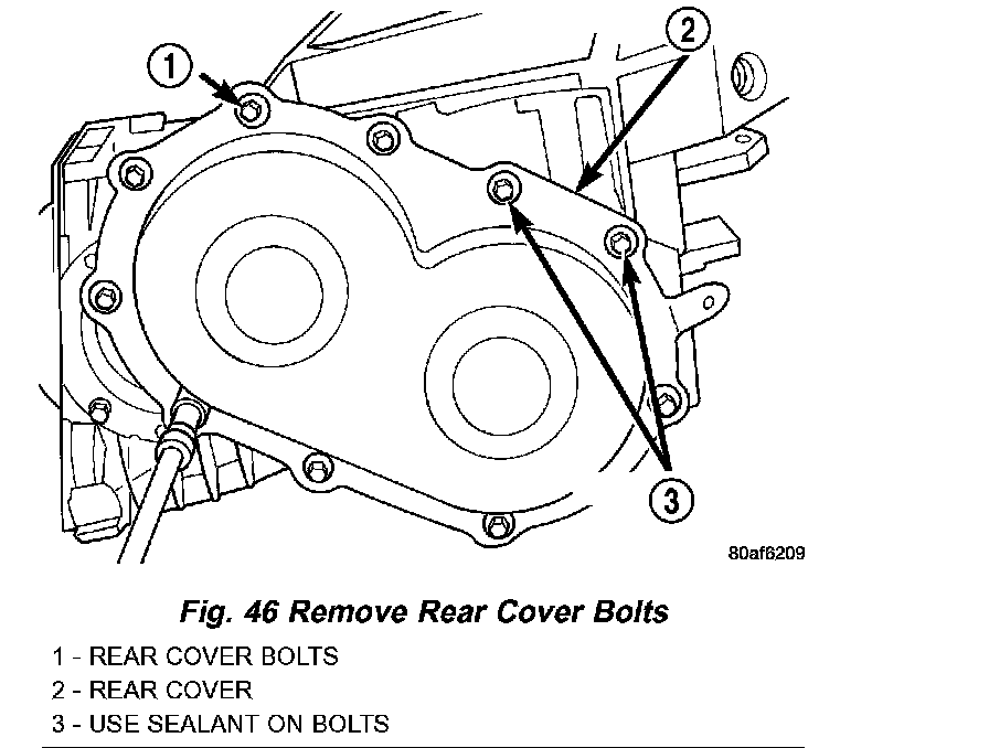 36. Remove transfer gear cover-to-case bolts (Fig. 46).