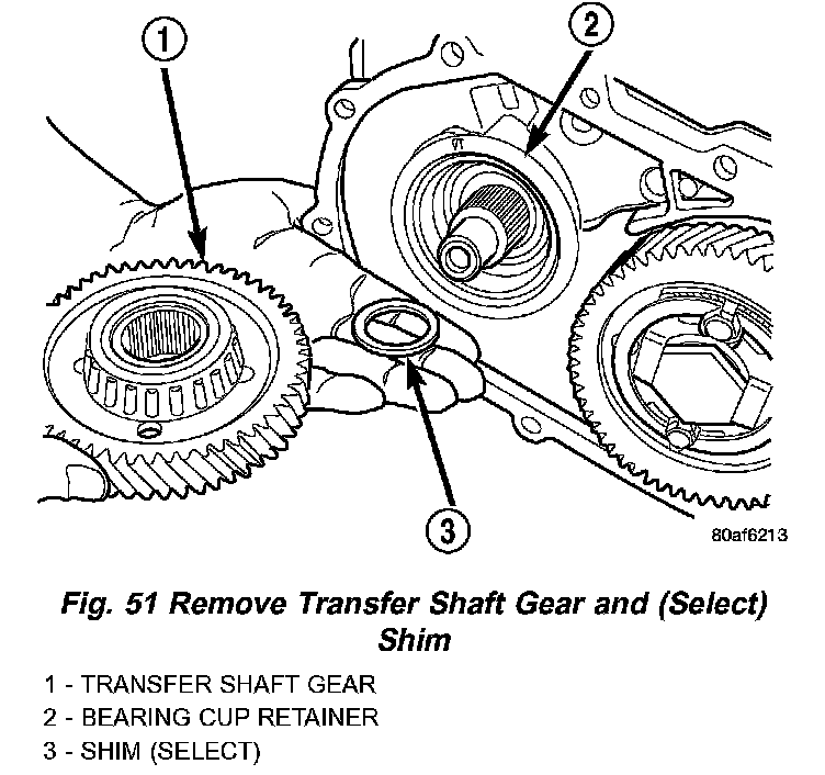 40. Remove transfer gear shim (select) (Fig. 51).
