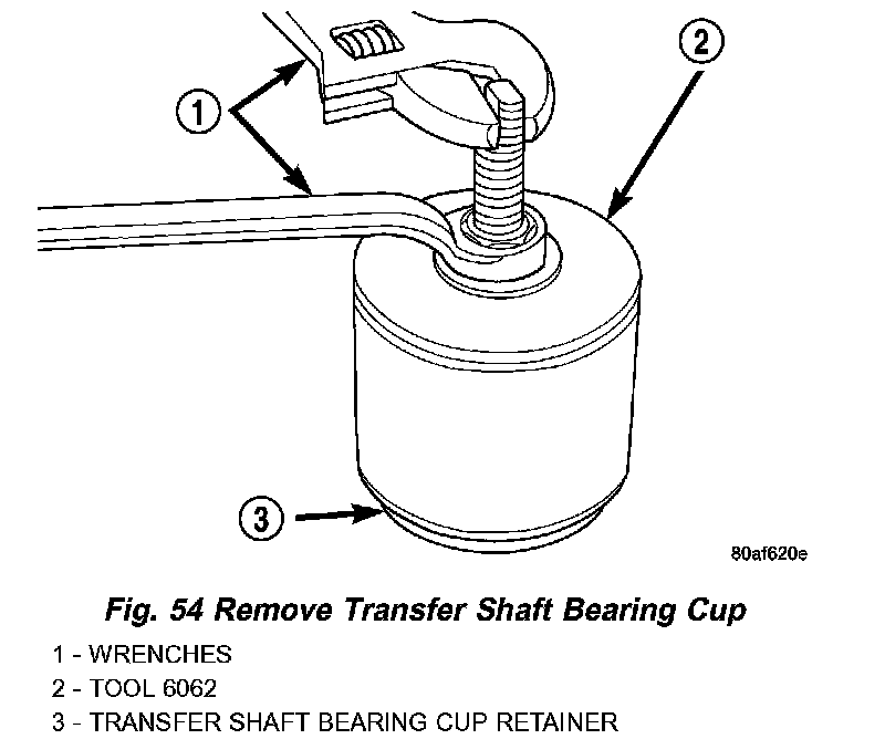 43. Remove transfer shaft bearing cup from retainer using Tool 6062 (Fig. 54).
