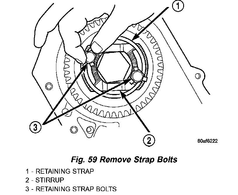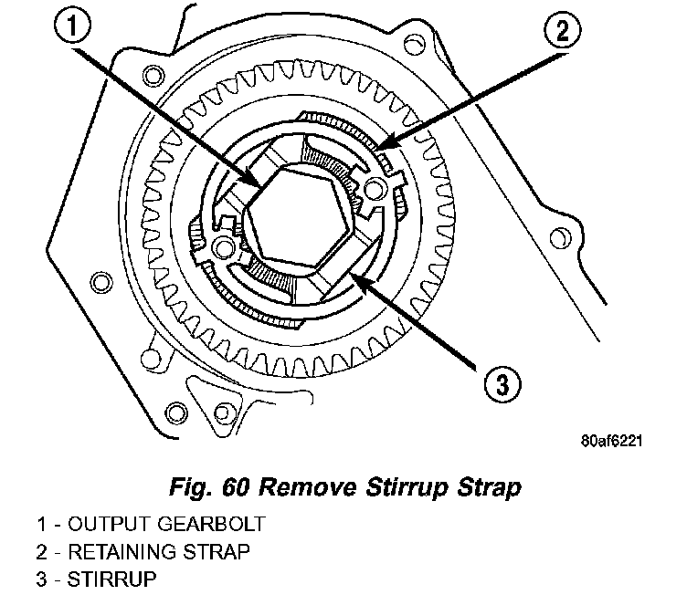 49. Remove output shaft stirrup strap bolts (Fig. 59).