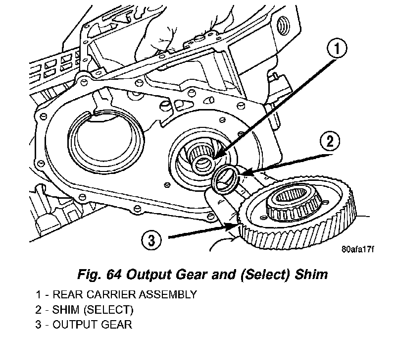 53. Remove output gear bearing shim (select) (Fig. 64).