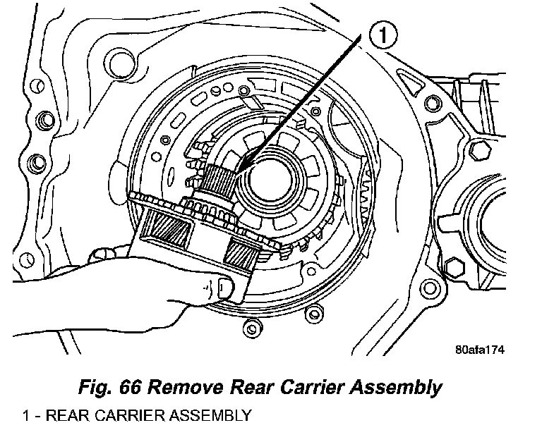 55. Remove rear carrier assembly from transaxle (Fig. 66).
