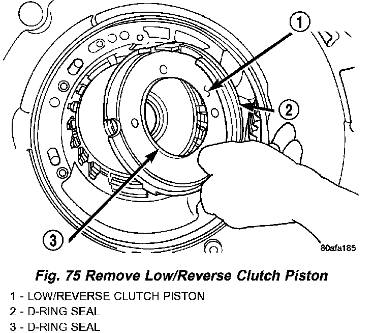 63. Remove low/reverse clutch piston (Fig. 75).