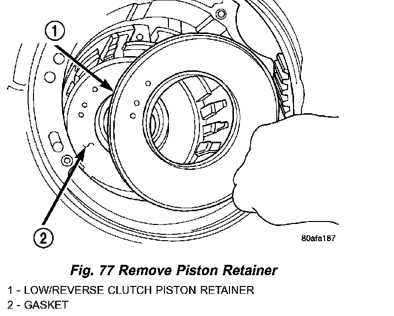 65. Remove low/reverse piston retainer (Fig. 77).