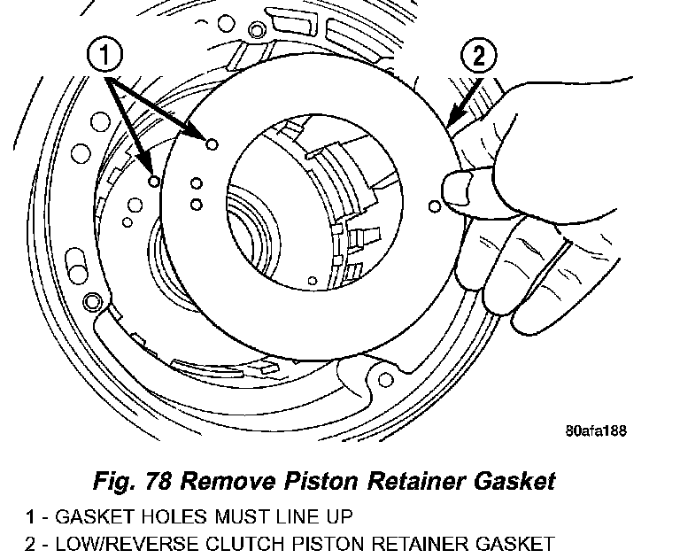 66. Remove low/reverse piston retainer-to-case gasket (Fig. 78).