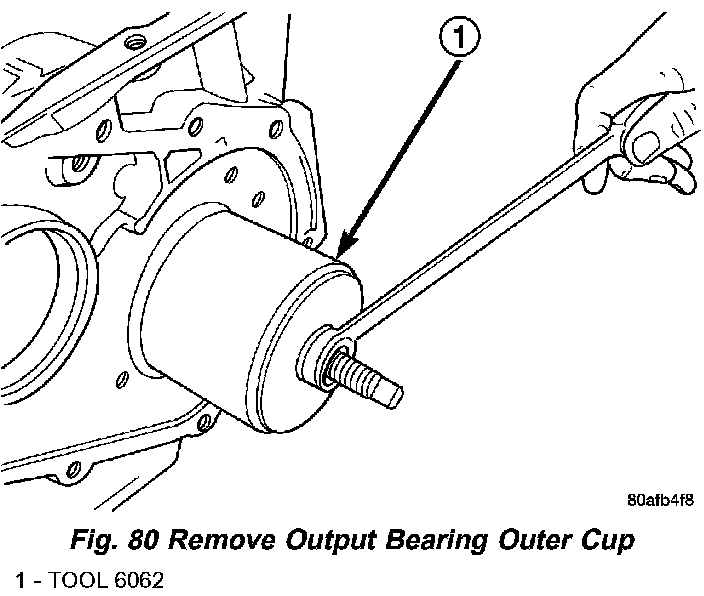 68. Using tool 6062, remove outer output bearing cup (Fig. 80).