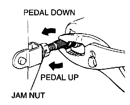3) Loosen the operating rod jam nut. Turn the serrations of the operation rod with pliers to adjust the brake pedal height to the standard valve.