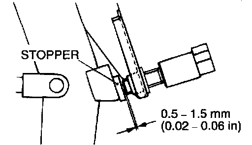 5) Turn the stoplight switch 1/4 turn clockwise to secure. Then confirm that the clearance between the switch plunger and the stopper is as shown.