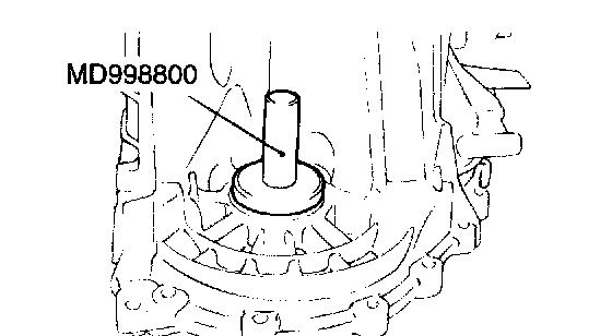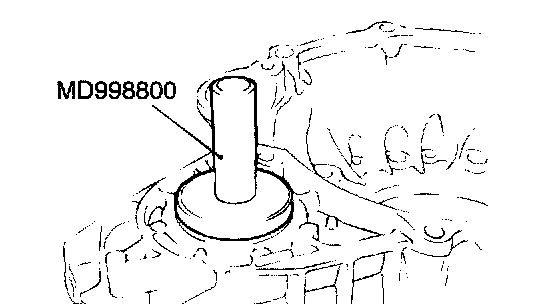 Use special tool MD998800 to tap the oil seal in the transaxle case.