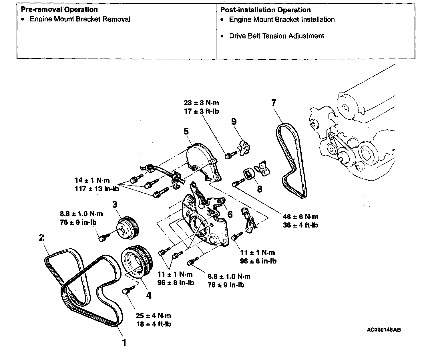 Timing belt tension torque: 3.5 Nm (31 in. lbs.)