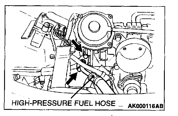 2. Disconnect the high-pressure fuel hose at the fuel rail side.