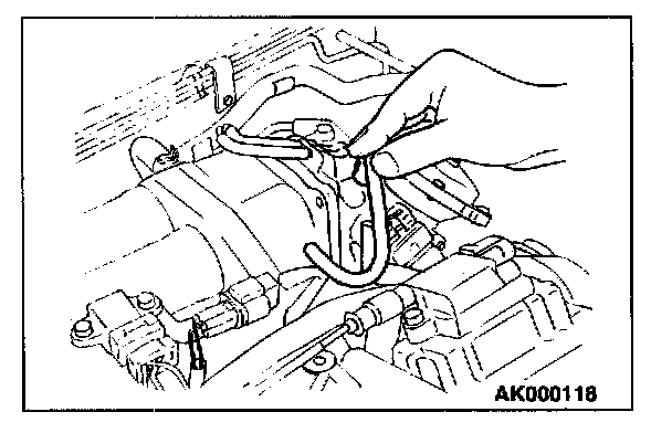 1. Rempve the union joint and bolt from special tool MD998709 (adaptor hose) and instead attach special tool MD998742 (hose adaptor) to the adaptor hose.