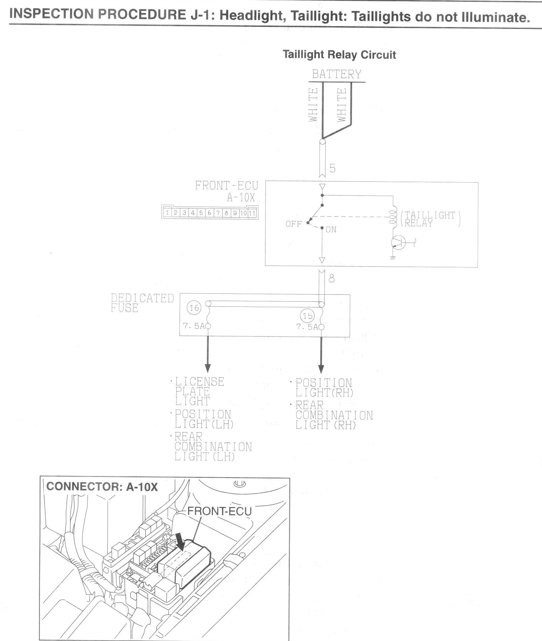 INSPECTION PROCEDURE J-1: Headlight, Taillight: Taillights do not illuminate.