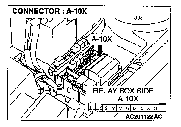STEP 5. Check the front-ECU connector A-10X for loose, corroded or damaged terminals, or terminals pushed back in the connector.