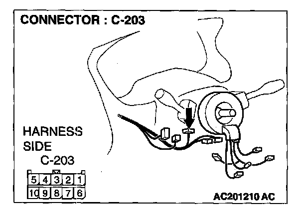 STEP 3. Check the wiring harness between column switch connector C-203 (terminal 6) and ETACS-ECU connector C-318 (terminal 66).
