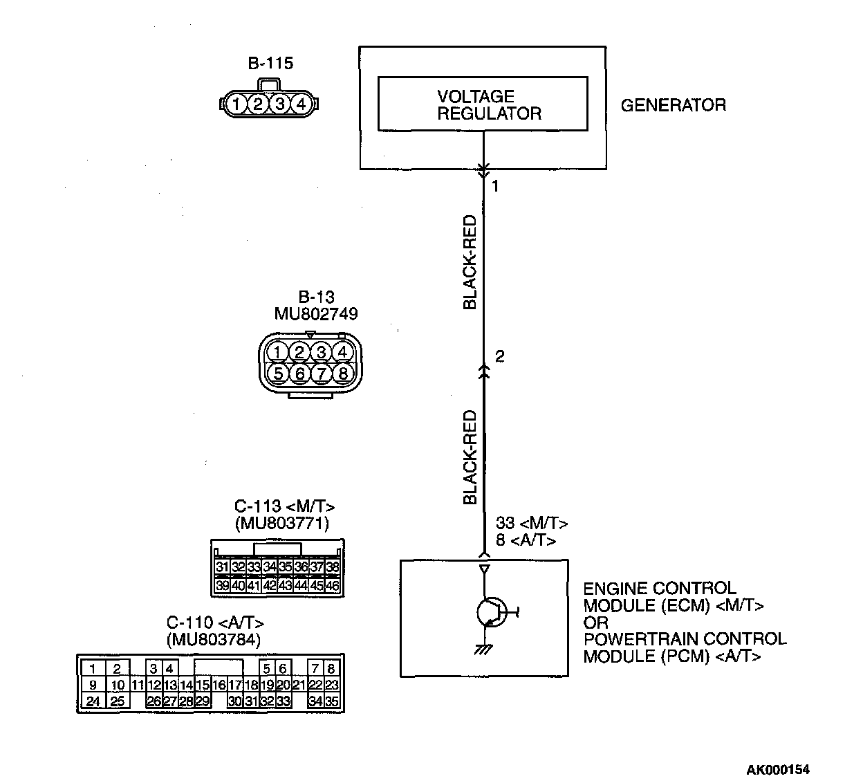 STEP 5. Check for open circuit and short circuit to ground and harness damage between generator connector B-115 (terminal No.1) and ECM connector C-113 (terminal No 33)