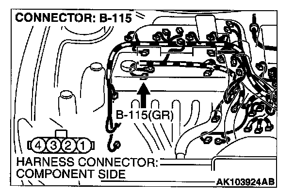 STEP 3. Check connector B-115 at generator connector for damage.