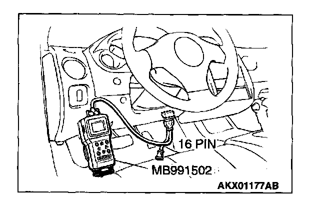 1. Connect scan tool MB991502 to the data link connector.