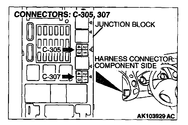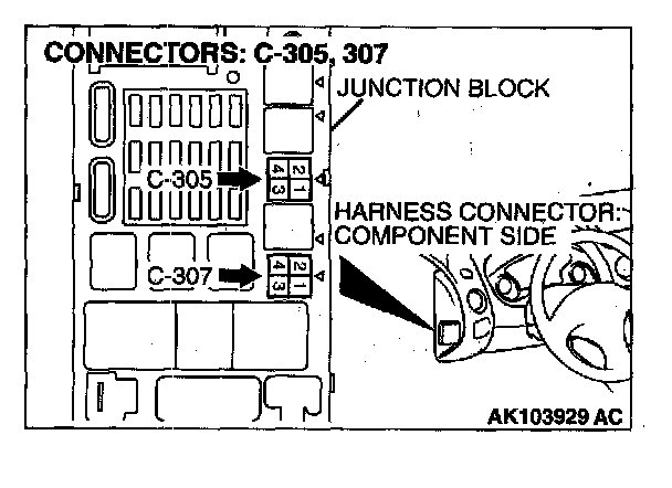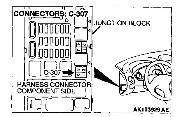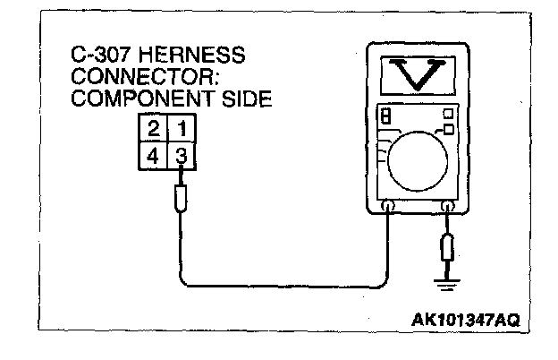 1. Disconnect the connector C-307 and measure at the harness side.