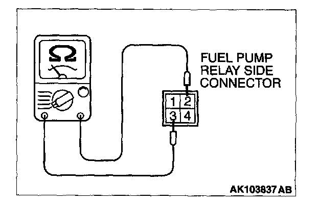 2. Check for continuity between the fuel pump relay terminals No.2 and No.3.