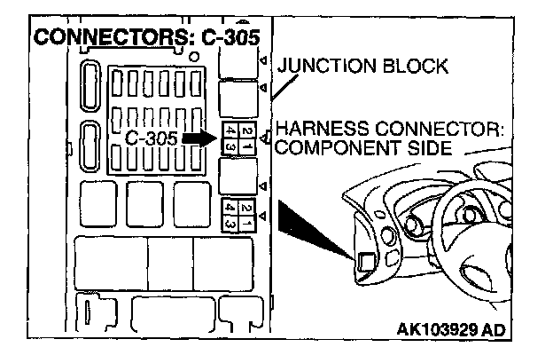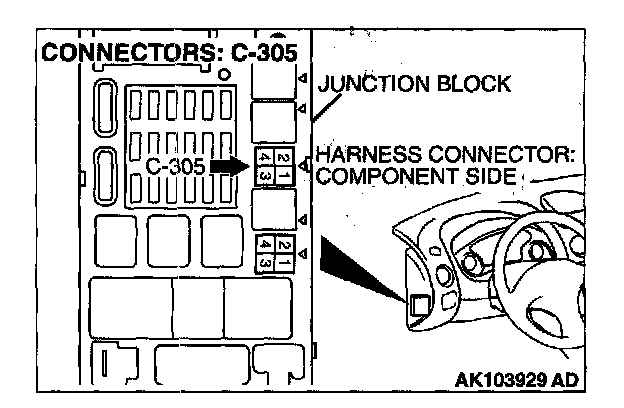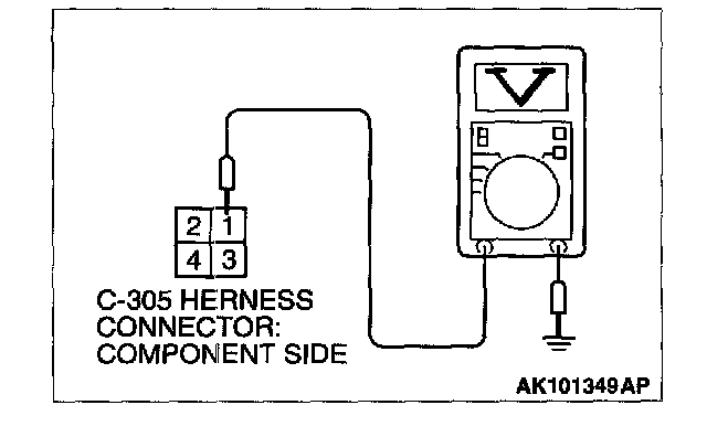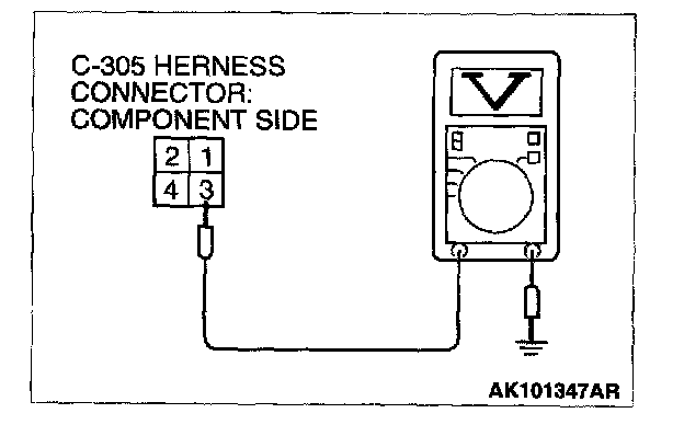 1. Disconnect the connector C-305 and measure at the harness side.