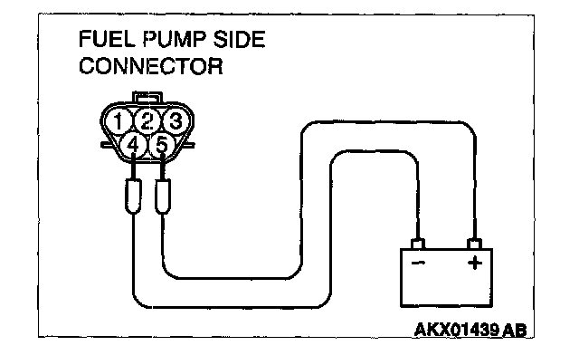 2. Use jumper wires to connect fuel pump connector terminal No.5 to the positive battery terminal and terminal No.4 to the negative battery terminal.