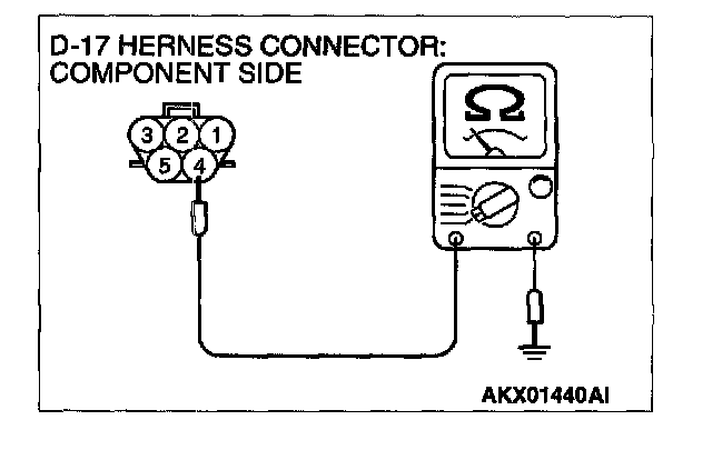 1. Disconnect the connector D-17 and measure at the harness side.