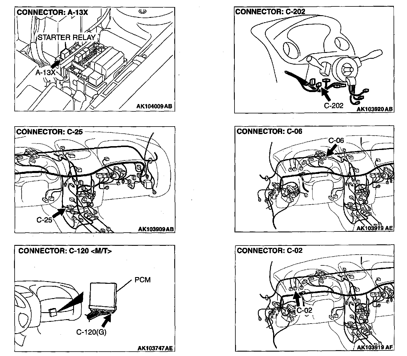 NO: Check connector C-25 at intermediate connector for damage, and repair or replace as required. Refer to Harness Connector Inspection. If intermediate connector is in good condition, repair harness wire between ignition switch connector C-202 (terminal No.5) and starter relay connector A-13X (terminals No.3, No.5) because of open circuit. Then confirm that the malfunction symptom is eliminated.