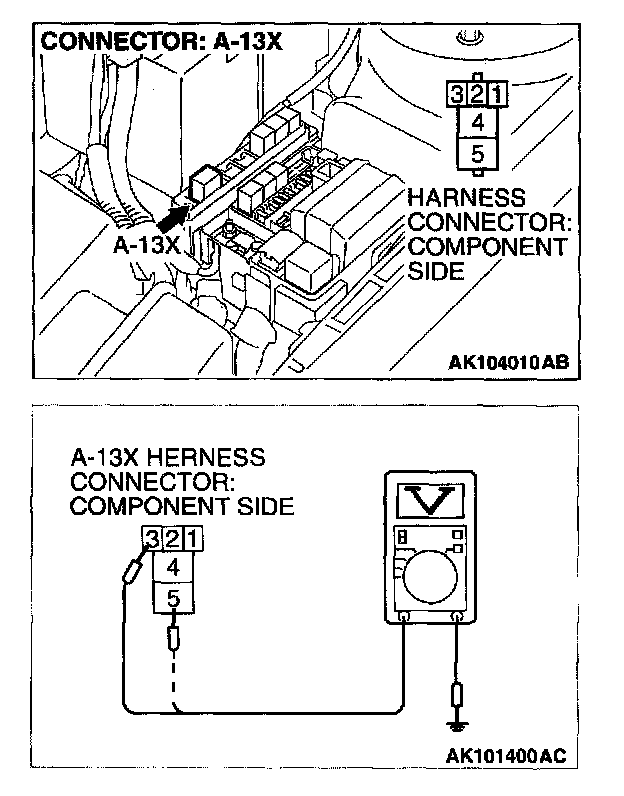STEP 3. Measure the power supply voltage at starter relay connector A-13X.