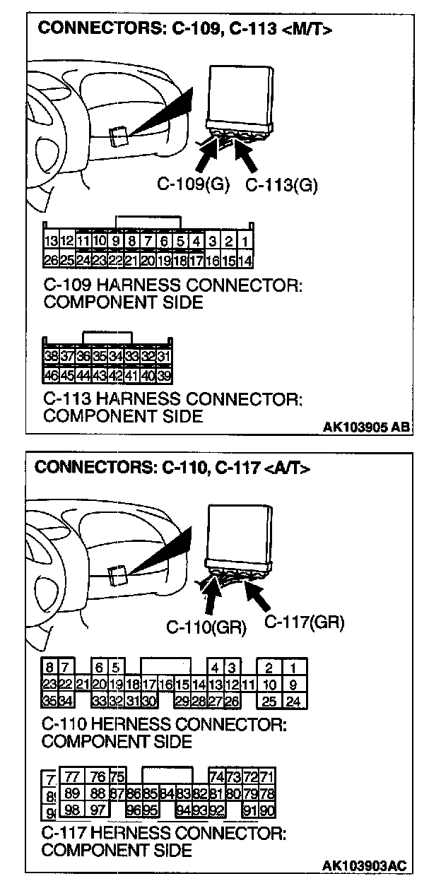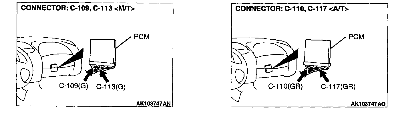 STEP 1. Check connectors C-109, C-113 at ECM or connectors C-110, C-117 at PCM