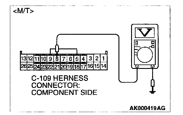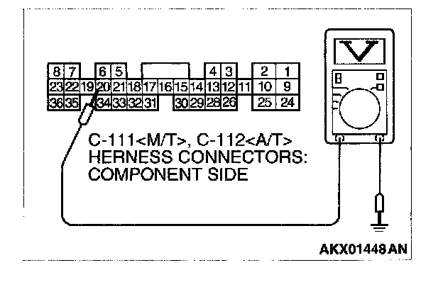 3. Measure the voltage between terminal No.8 or No. 20 and ground.