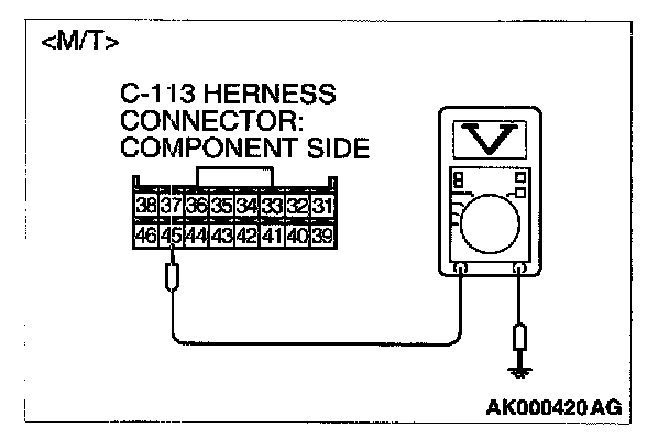 3. Measure the voltage between terminal No.45 or No. 83 and ground.