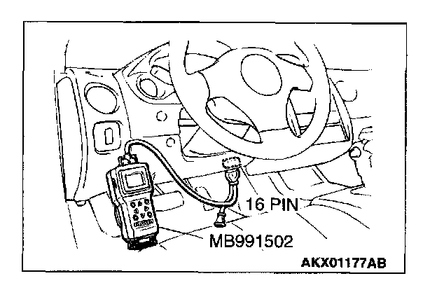 To prevent damage to scan tool MB991502, always turn the ignition switch to the "LOCK" (OFF) position before connecting or disconnecting scan tool MB991502.