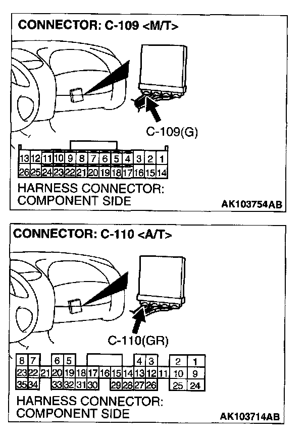 b. Check the harness wire between injector connector B-02 (terminal No.2) and ECM connector C-109 (terminal No. 14)