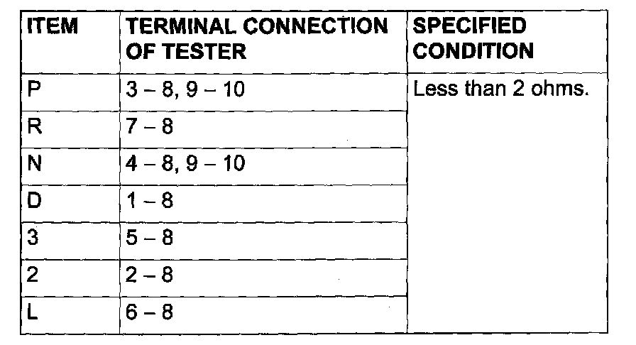 PARK/NEUTRAL POSITION SWITCH AND CONTROL CABLE ADJUSTMENT1. Set the selector lever to the "N" position.