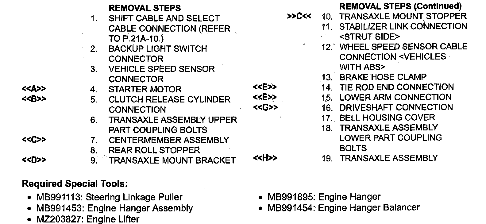 <> CLUTCH RELEASE CYLINDER REMOVAL