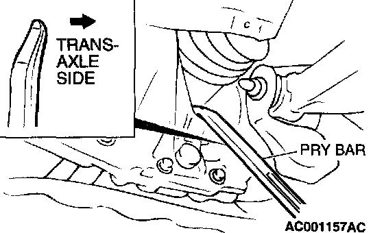 - Do not damage the transaxle oil seal with the spline of the driveshaft. Insert a pry bar between the transaxle case and the driveshaft as shown to remove the driveshaft.