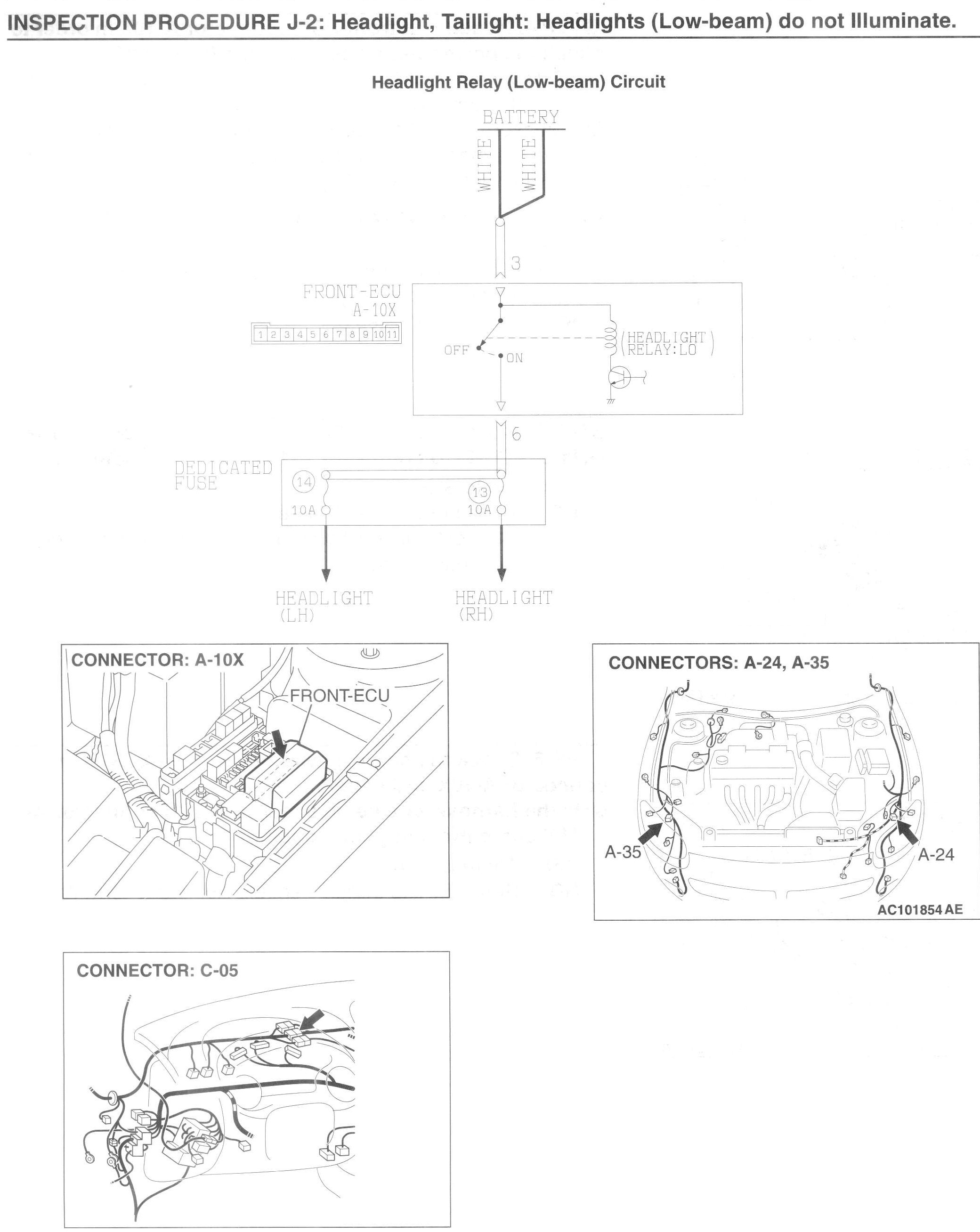 INSPECTION PROCEDURE J-2: Headlight, Taillight: Headlights (low-beam) do not illuminate.
