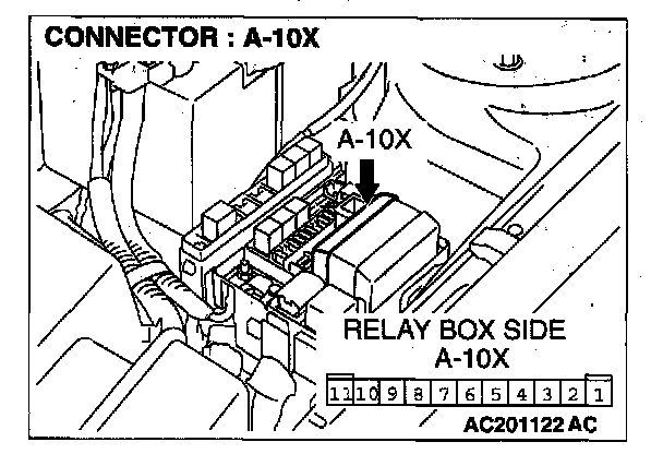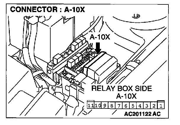 STEP 5. Check front-ECU connector A-10X for loose, corroded or damaged terminals, or terminals pushed back in the connector.