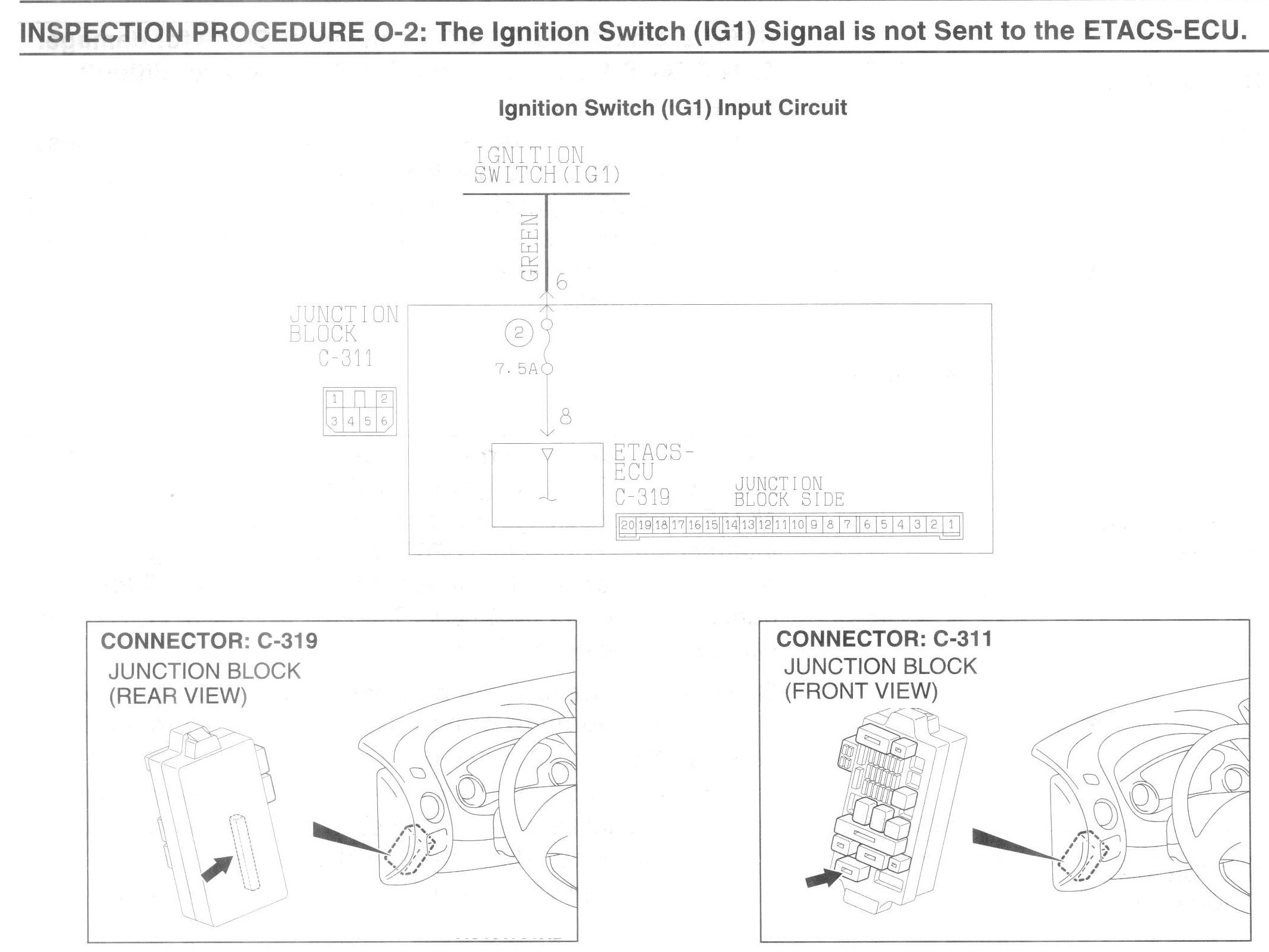 INSPECTION PROCEDURE O-2: The ignition switch (IG1) signal is not sent to the ETACS-ECU.