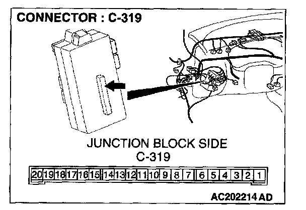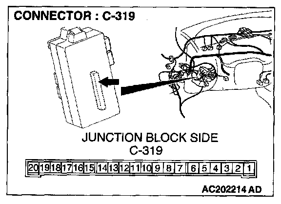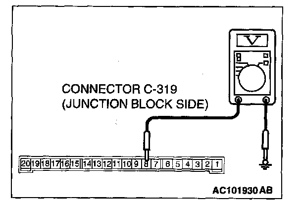 1. Disconnect the ETACS-ECU connector C-319 and measure the voltage available at the junction block side of the connector.