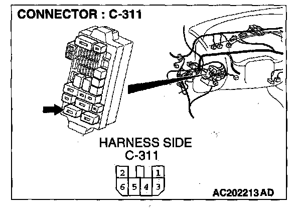NOTE: Also check junction block connector C-311 for loose, corroded, or damaged terminals, or terminals pushed back in the connector. If junction block connector C-311 is damaged, repair or replace the damaged components) as described in Harness Connector Inspection.