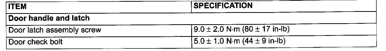 Fastener Tightening Specifications: