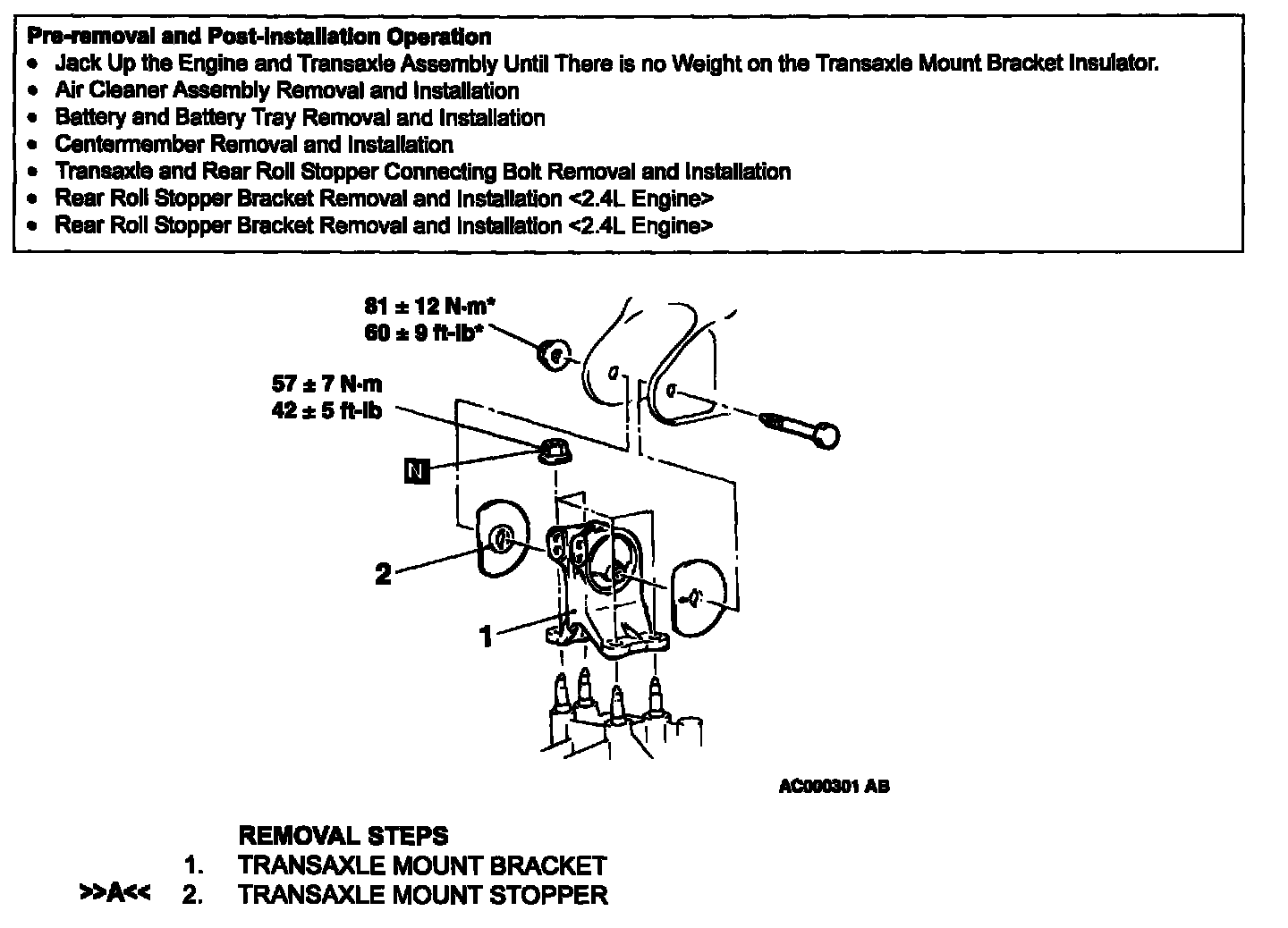 TRANSAXLE MOUNTINGREMOVAL AND INSTALLATION