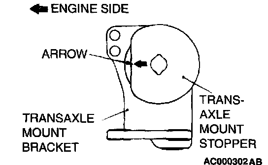 Clamp the transaxle mount stopper so that the arrow points in the direction as shown in the diagram.